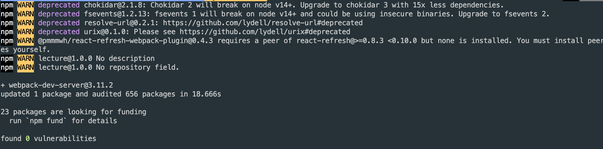 우선 `react-refresh`와 `react-refresh-webpack-plugin` 두가지를 개발모드로 설치해준다.